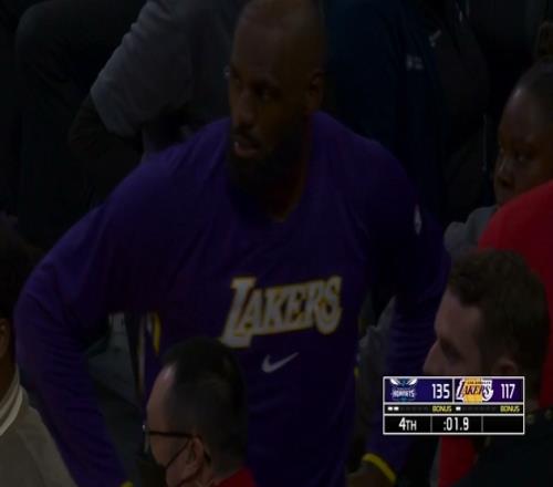 比赛最后2秒钟詹姆斯起身看了一眼球场&随后直接返回球员通道