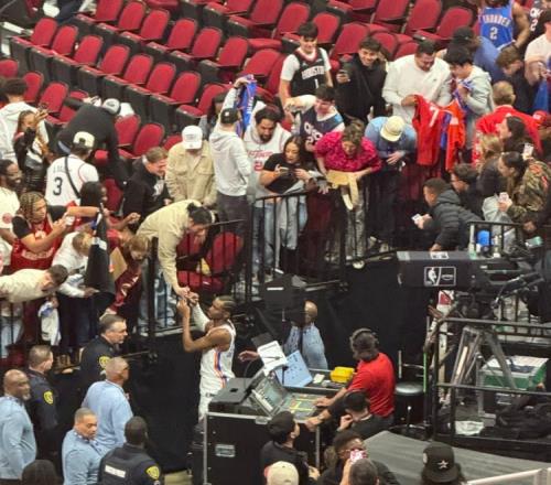 赛后,亚历山大为休斯敦的客场球迷签名。